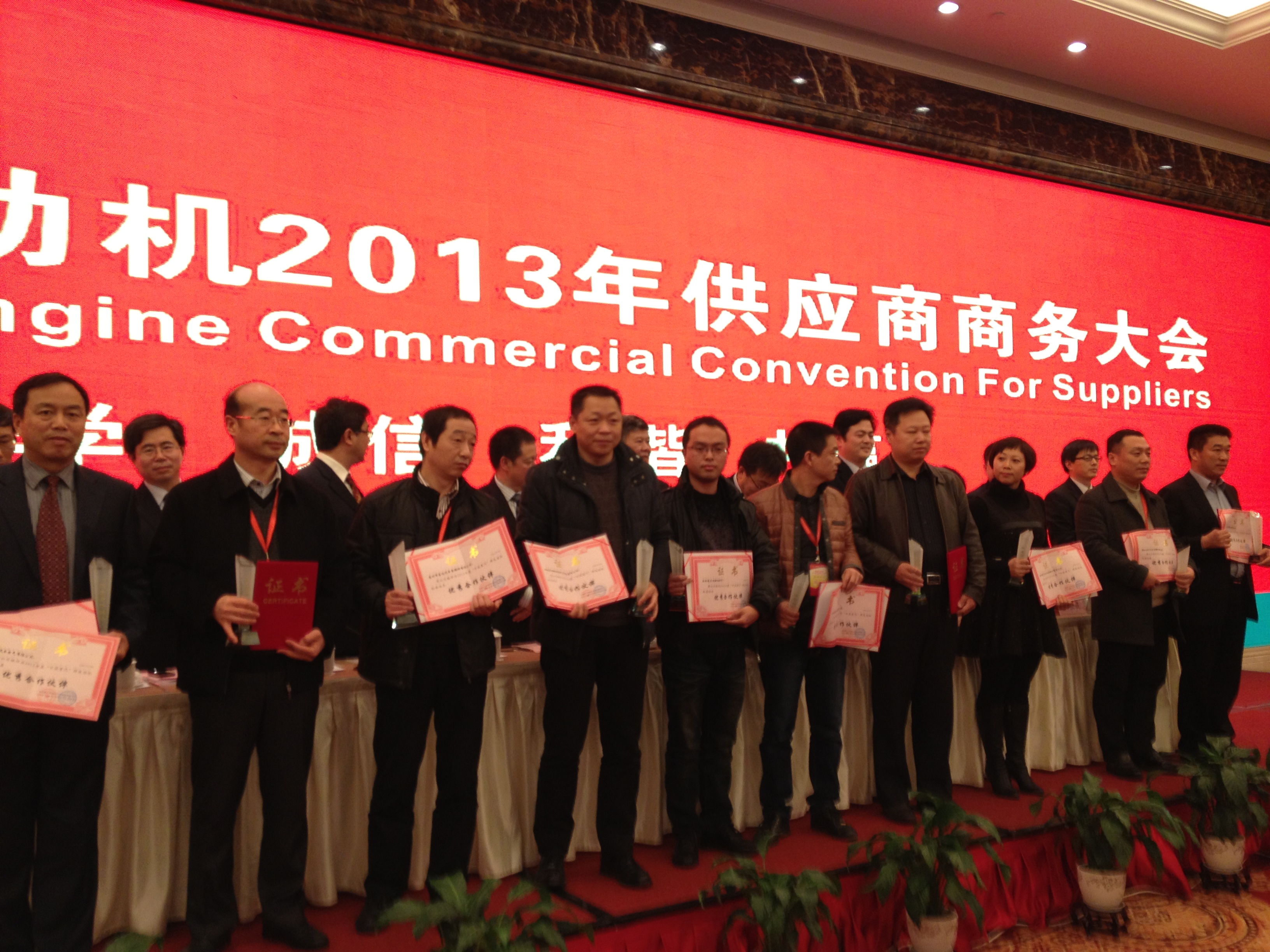 回顧2012年緊張的工作,重汽肯定了各供應商風雨相伴的卓越付出,并為鼓勵供應商在今后的工作中再接再厲,特將10家單位評選為優秀合作伙伴。非常榮幸,我公司在眾多供應商中脫穎而出,位列榜單。與會期間,李旭升副總經理代表TCY全體員工,伴著鏗鏘的音樂走上領獎臺,接受表彰。