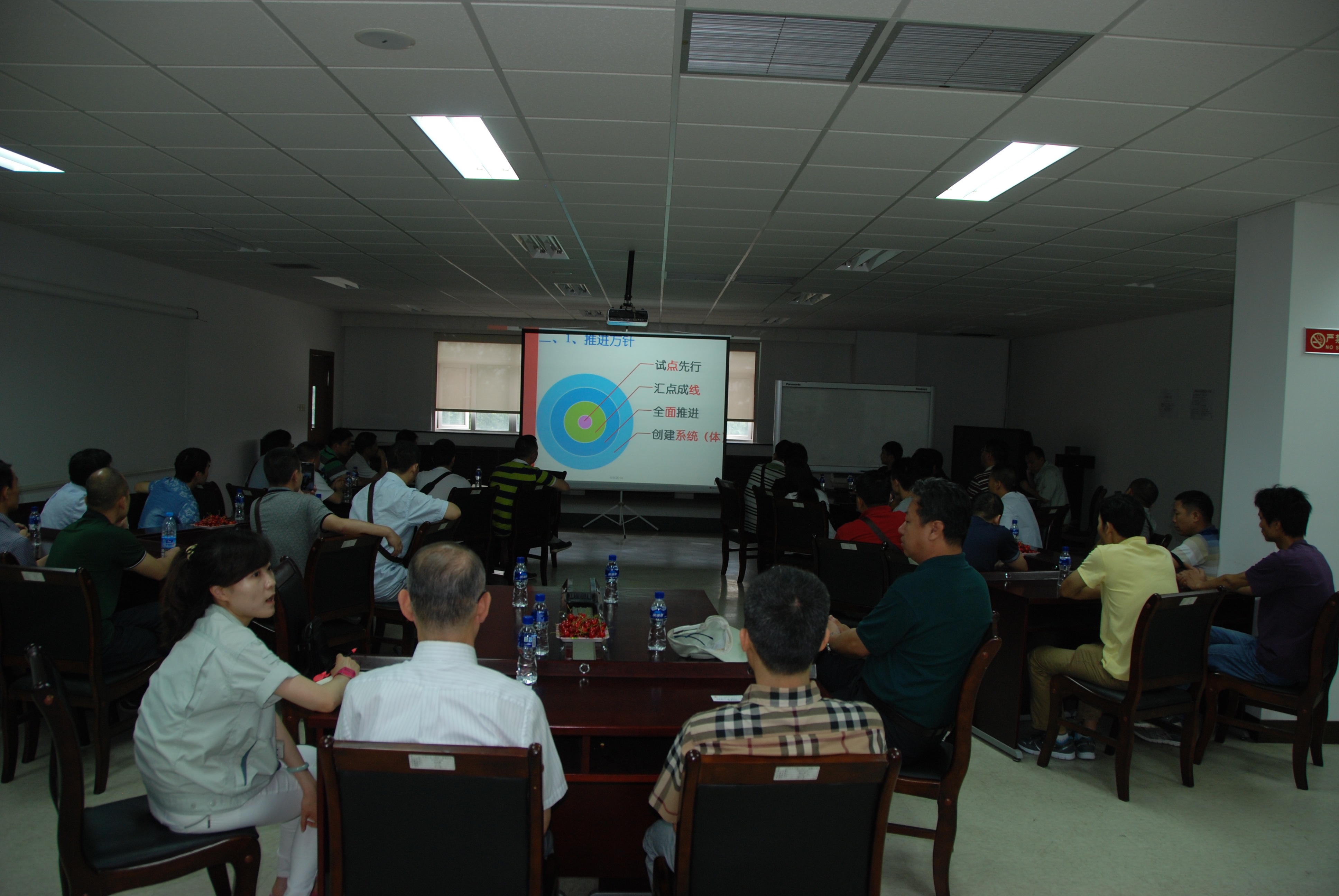 一行人員針對工場現(xiàn)場進行了參觀。TCY相關人員針對TPS的省人化、可視化管理、工場改革等做了現(xiàn)場講解,并針對TPS的優(yōu)秀改善點(新產(chǎn)品試制線、協(xié)助作業(yè)等)進行了詳細介紹。吳迪針對TCY的TPS推進情況作出報告,同時雙方展開激烈的交流。近藤總經(jīng)理、李旭升副總、王喜全副總以及相關人員針對廣東四會提出的交流問題一一作出回答,得到廣東四會熱烈的掌聲和贊揚。