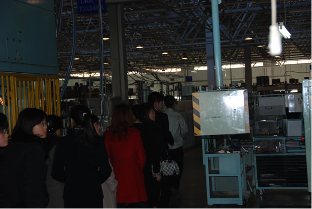 2011年3月8日,工商學院師生近50人參觀了大豐工業(yè)(煙臺)有限公司,柳副總經(jīng)理和財務部山清華部長助理親自帶領學生們進行了參觀,首先觀看了公司的宣傳片,然后參觀了辦公大廳、加工車間和電鍍車間各生產(chǎn)線,柳副總經(jīng)理給師生們做了詳細的講解。師生們都感觸很深,并對我公司給予了很高評價。